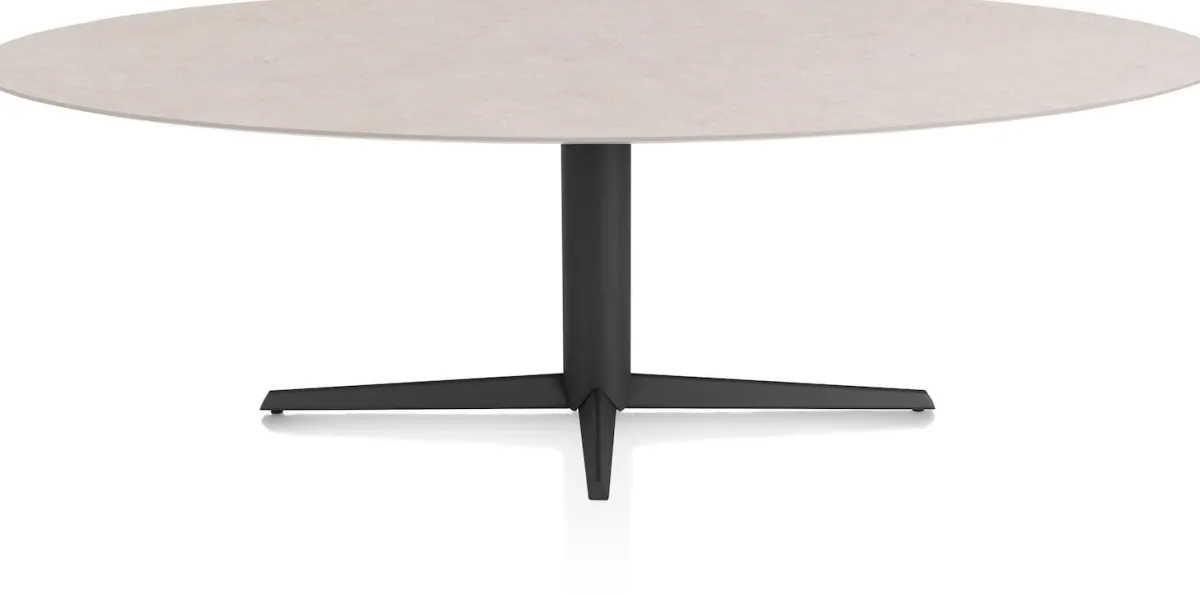 New XOOON Saluti, EETKAMERTAFEL ELLIPS 240 X 110 CM. – CENTRALE POOT – ROUGH OFF BLACK – Light sand