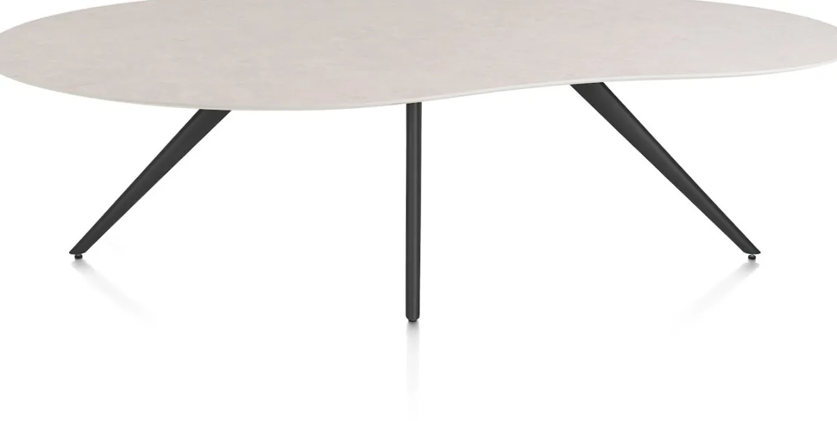 New XOOON Saluti, EETKAMERTAFEL ORGANISCH 240 X 120 CM. – 4-POOTJES – ROUGH OFF BLACK – Light sand