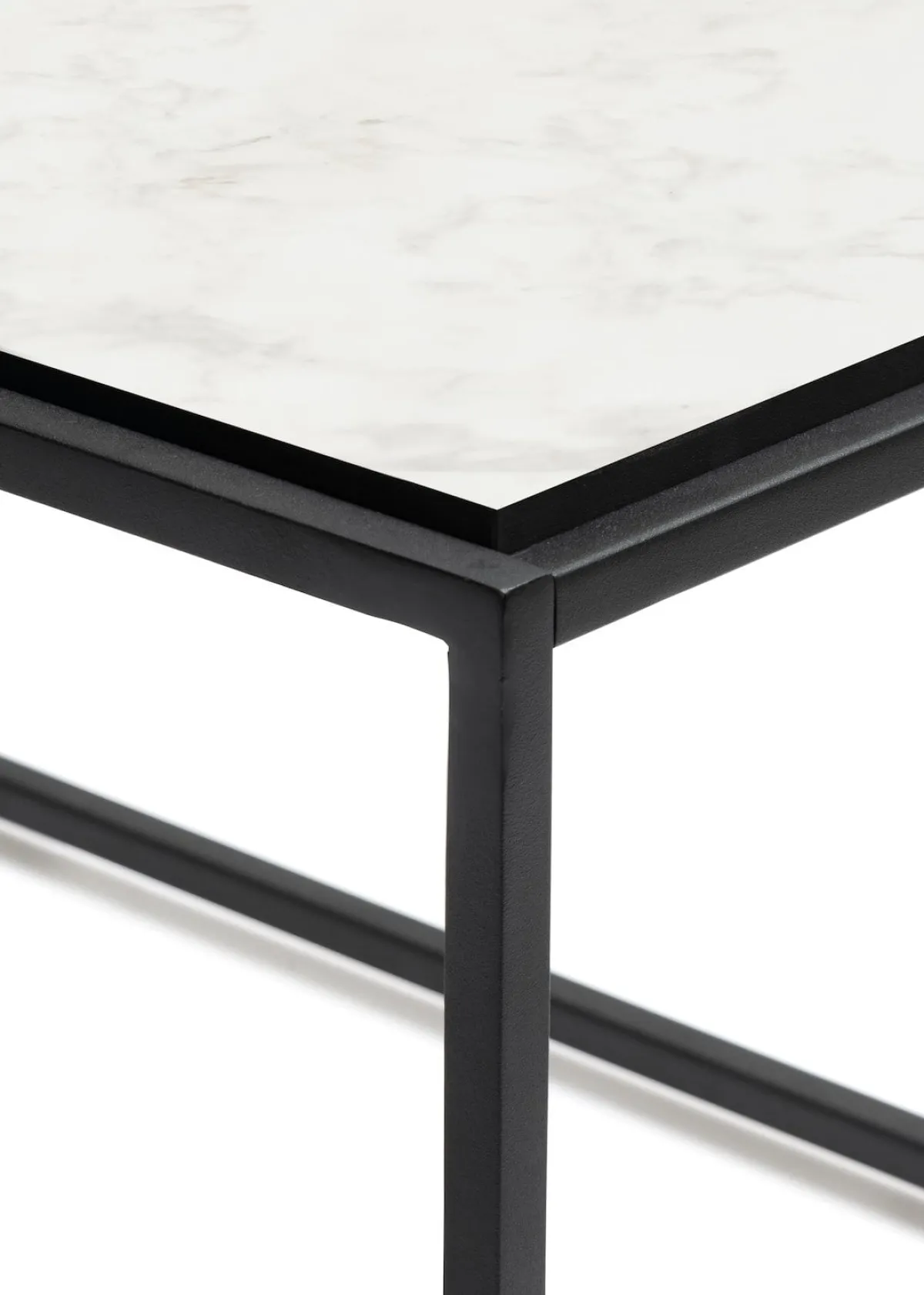 De Stand Up serie van COCOmaison omvat diverse tafeltjes met een omkeerbaar blad, waarmee je de uitstraling van de tafel kunt veranderen door simpelweg het blad om te draaien. Wat deze salontafel extra speciaal maakt, is dat hij door zijn afmeting van 40 cm breedte, 100 cm diepte en 35 cm hoogte ook nog eens perfect tussen verschillende delen van een elementenbank past. Op die manier kun je je bank dus uitbreiden met een tussentafel voor een leuk effect. Deze variant heeft een zwart metalen frame en een marmerlook blad in zwart of wit, maar er bestaat ook nog een andere kleurcombinatie. Ook handig: Het blad van HPL is onderhoudsvriendelijk.