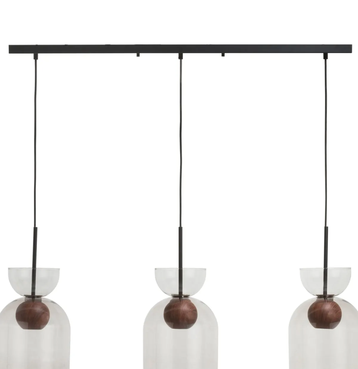 Hanglamp Skylar is een stijlvolle hanglamp met drie lampen. Door de mooie balans tussen de materialen in glas en metaal past Skylar perfect in elk interieur. De lamp is afgewerkt met bollen in houtlook en 3 moderne lampenkappen in antraciet. De hanglamp is in hoogte verstelbaar en kan opgehangen worden variërend van 120 cm tot 160 cm. En door de passende externe dimmer kan het licht worden aangepast naar de gewenste sfeer. De lamp is ook verkrijgbaar als wand-, tafel- of vloerlamp. (Lichtbron: 3* GU10 10W LED) (Let op: lichtbron niet inbegrepen)