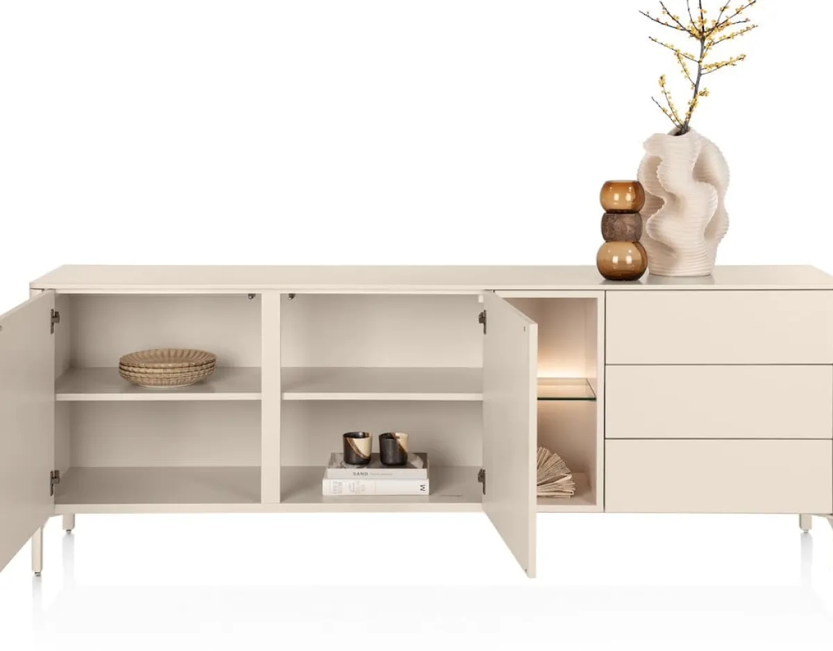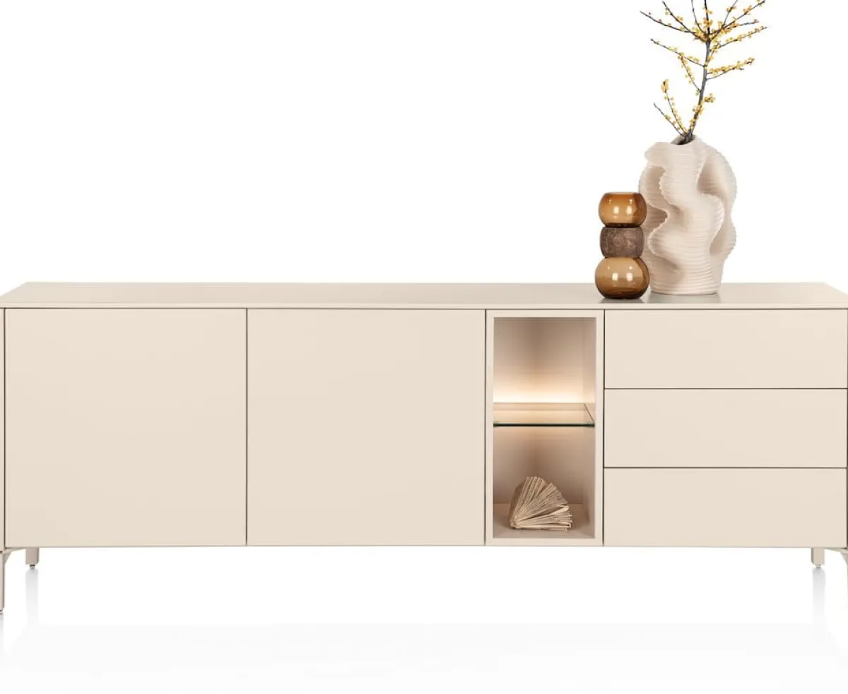 Online XOOON Trentino, Dressoir 210 cm. – 2-deuren + 3-laden + 2-niches – Creme