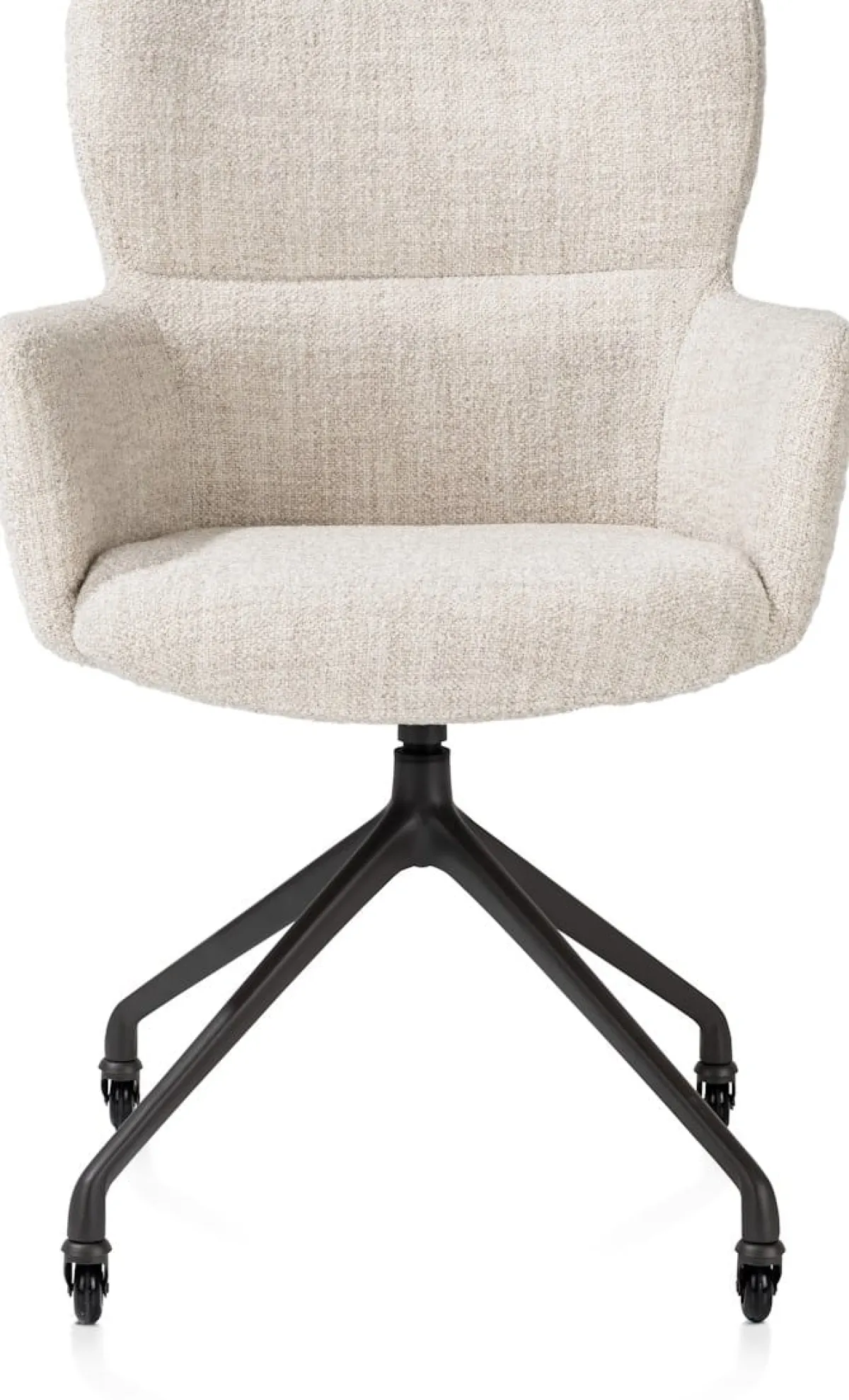 Sale XOOON Sage, armstoel + wielen – alu frame in rough off black – stof Luton – Creme
