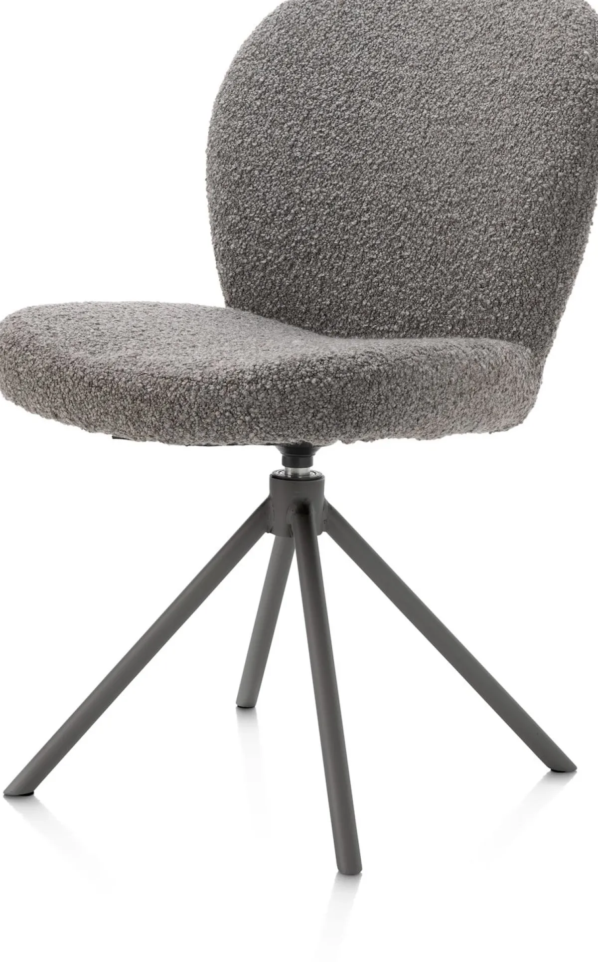 JAXON is een eetkamerstoel waar je letterlijk alle kanten mee op kunt! Hij is namelijk 180 graden draaibaar en uitgerust met een praktische terugdraaifunctie. De eetkamerstoel is bekleed met de leverkleurige grove bouclé stof Brioni, die heerlijk zacht aanvoelt. Kijk ook eens naar de andere kleuren waarin JAXON verkrijgbaar is. Ga je voor een speelse mix aan je eetkamertafel of houd je het bij één kleur? JAXON heeft een grafietkleurige centrale 4-poot. De eetkamerstoel is ook verkrijgbaar als armstoel!