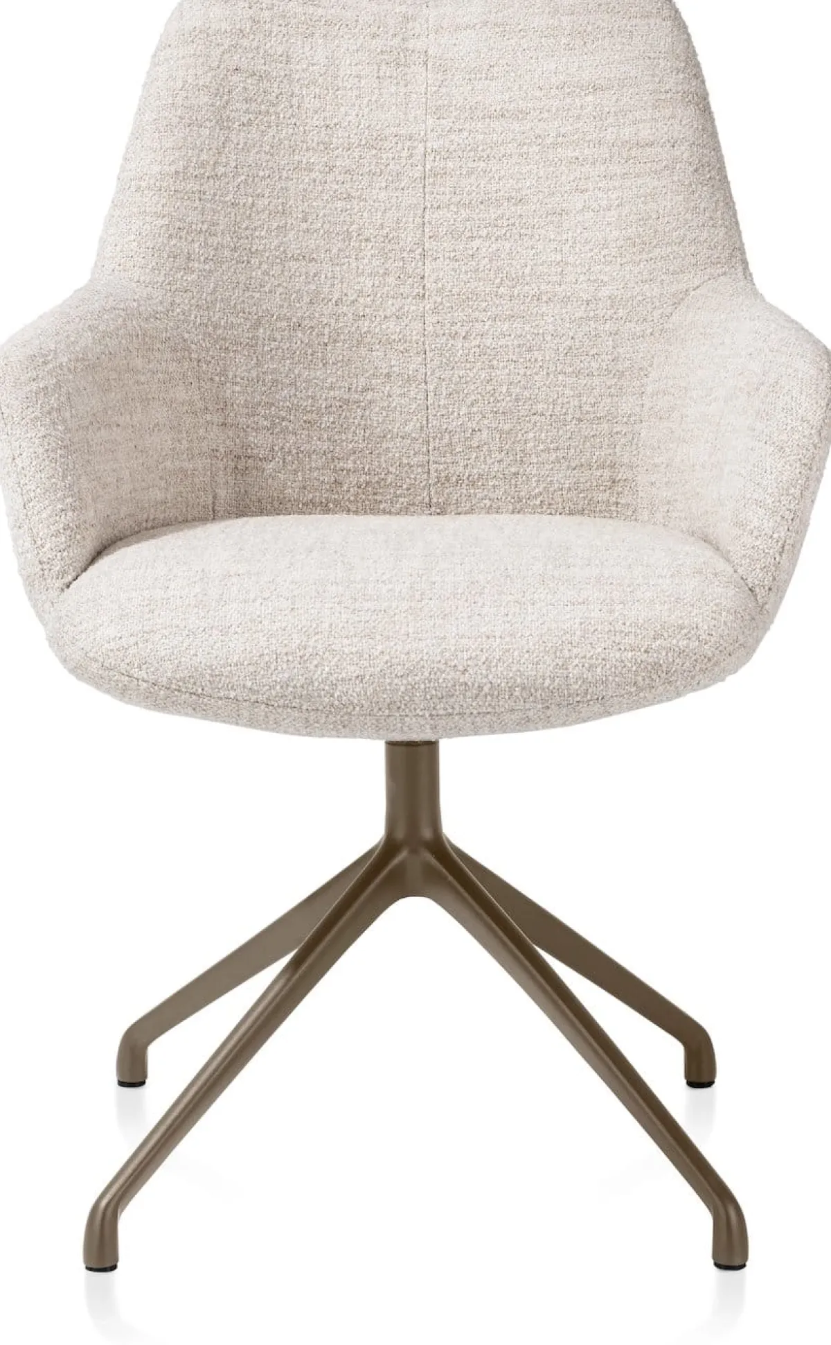 Wil je jouw interieur upgraden met een moderne armstoel? Ontdek armstoel MATS in de crèmekleurige stof Luton. MATS is populair vanwege zijn zachte, vriendelijke vormgeving. Ook is hij lekker praktisch dankzij het 360° draaibare steelbrown frame van aluminium. Ben je dol op lang tafelen? Dankzij de comfortabele armleuningen en heerlijke zit, ben je uren zoet met MATS. Ontdek de verschillende uitvoeringen waarin hij verkrijgbaar is qua kleur, bekleding en onderstel.