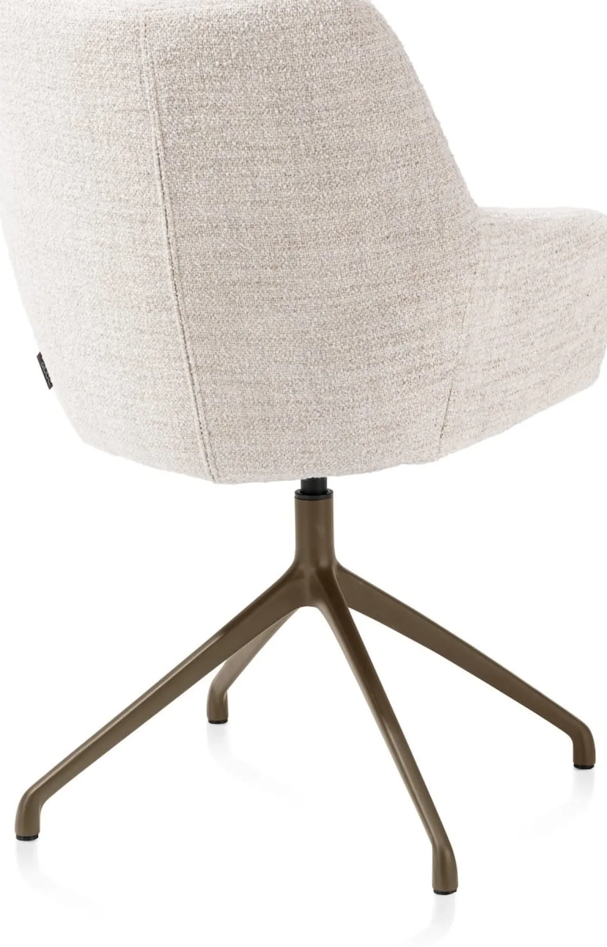 XOOON Mats, armstoel aluminium frame 4-poots – draaibaar steelbrown – stof Luton – Creme