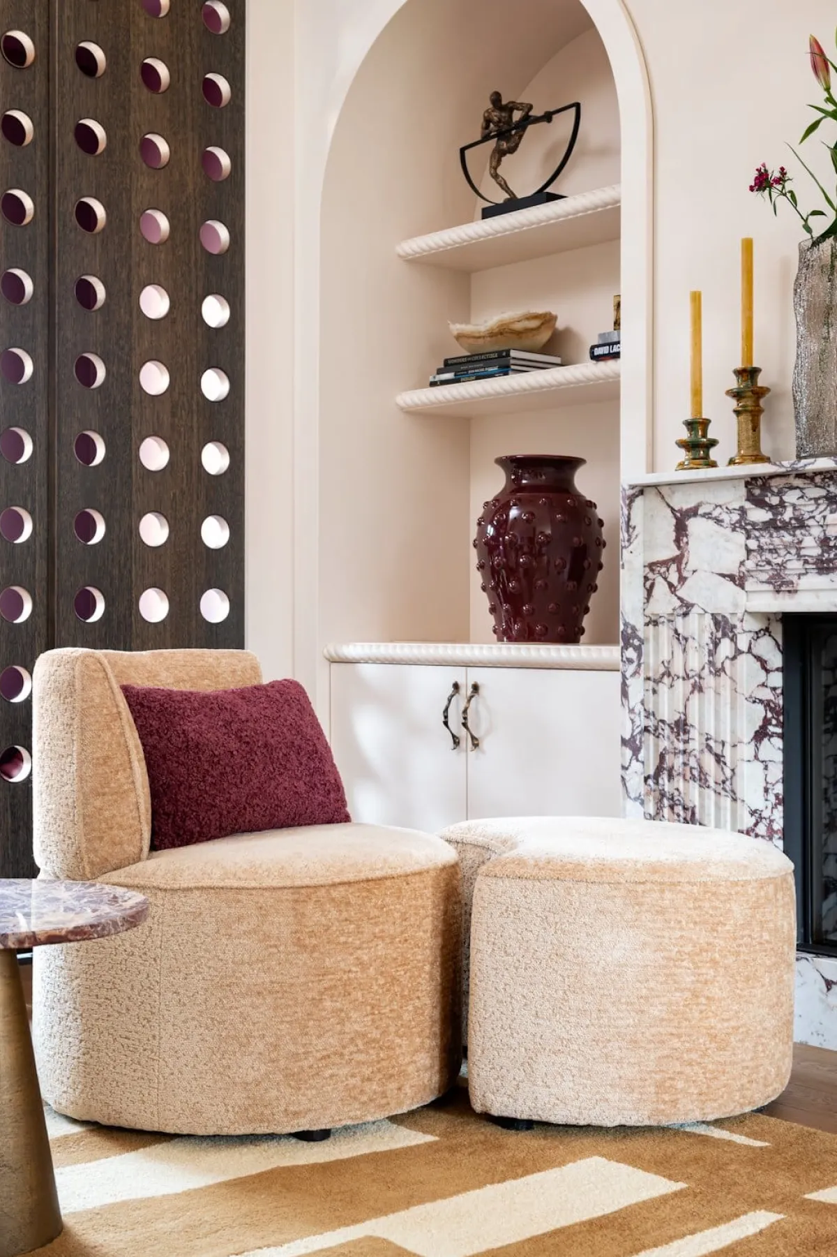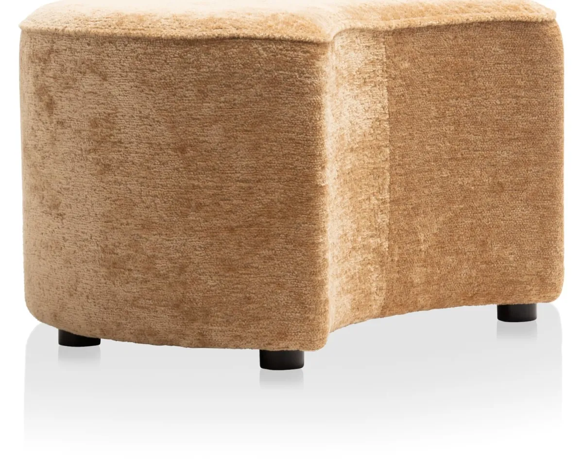 De poefs, het bankje en de fauteuil uit de Roan-serie van COCOmaison zijn door hun vorm perfect met elkaar te combineren. Alle items zijn bekleed met een trendy stof en zijn verkrijgbaar in twee kleuren. Deze okerkleurige poef in de vorm van een halve maan kan perfect aan één van de andere elementen geschoven worden, waardoor je een groter zithoekje kunt creëren. De poef is gemaakt van 40% multiplex, 30% schuim en 30% stof. Een handig detail: er worden twee sets poten meegeleverd, waardoor je de fauteuil op een standaard zithoogte kunt plaatsen, maar ook op een hoogte die geschikt is voor gebruik aan een eettafel. Bij elkaar heeft deze poef een diameter van 59/71 cm en een hoogte van 44 cm.