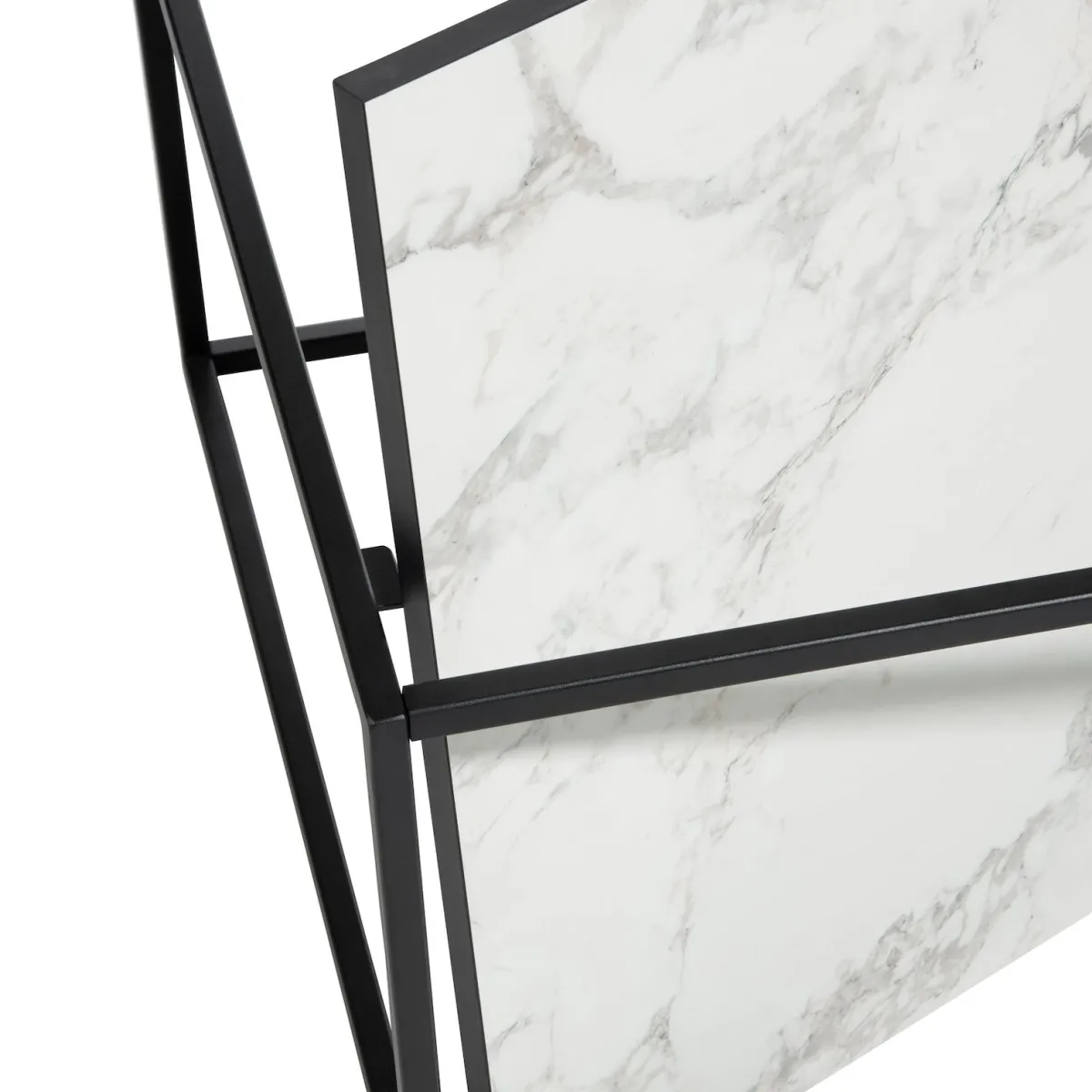 Deze salontafel STAND UP uit de collectie van COCOmaison met zwart frame is geliefd vanwege zijn omkeerbare blad van marmer HPL. Je kiest zelf of je de witte of de zwarte kant bovenaan legt. Keer het blad om zodra jij zin hebt in een nieuwe look! Het frame is ook verkrijgbaar in goudkleur. Deze salontafel is voorzien van een plank om eventueel wat spulletjes neer te leggen. Je zet de tafel heel eenvoudig zelf in elkaar. Deze tafel heeft een afmeting van 60 x 100 cm en is 35 cm hoog. Kijk ook eens naar de andere bijzettafels en pilaren uit de STAND UP serie.